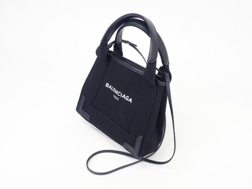 【中古】【辛口評価】【ABランク】BALENCIAGA バレンシアガ ネイビー カバ XS 2WAYトートバッグ 390346 キャンバス ブラック