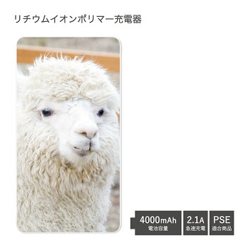 【PSE適合品】 No89 アルパカ 受注生産 急速充電 USB出力 リチウムイオンポリマー充電器 2.1A 4000mAh モバイルバッテリー microUSBケーブル付属 iPhone Android LEDランプ フォト アニマル 写真 かわいい おしゃれ メンズ レディース 可愛い オシャレ d:ani