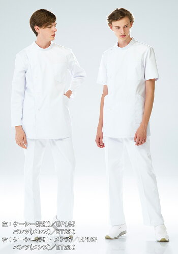 ■品名・品番 ケーシー(男性/メンズ) EP167 ■カラー ホワイト ■サイズ (S1) S M L LL BM BL (B1) (B3) (B5) ※S1・B1〜B5はイージーオーダー(受注生産)品となります。